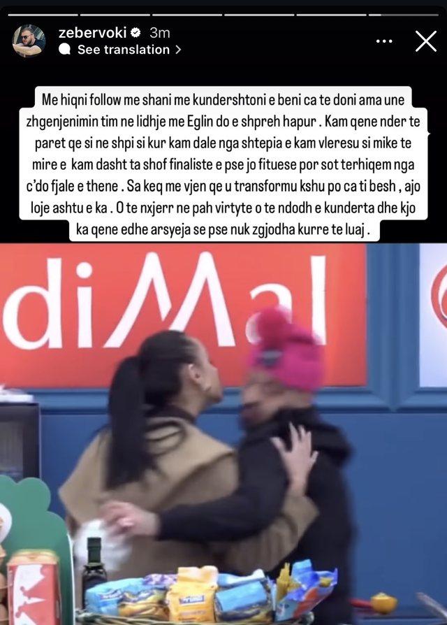 “Me hiqni follow, më shani, më kundërshtoni e bëni ç’të doni, ama unë zhgënjimin tim në lidhje me Eglin do e shpreh hapur. Kam qenë ndër të parët që në shtëpi si kur kam dalë nga shtëpia e kam vlerësuar si mike të mirë e kam dashur ta shoh finaliste e pse jo fituese, por sot tërhiqem nga çdo fjalë e thënë. Sa keq më vjen që u transformu kështu, po ç’ti bësh, ajo lojë ashtu e ka,” – ka shkruar ai.